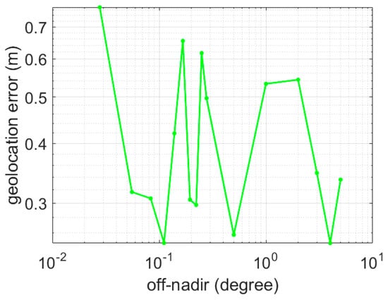 Total geolocation errors after calibration with different off-nadir pointing angles.