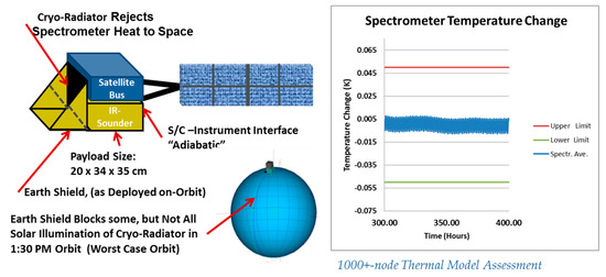 An additional challenge for MISTiC, and precision measurements generally aboard a micro-satellite, is that the thermal environment is quite variable over the orbit, yet the spacecraft and instrument resources available to manage these challenges are severely constrained. This challenge was assessed through thermal modeling under the IIP, and key results are summarized in Figure 9.