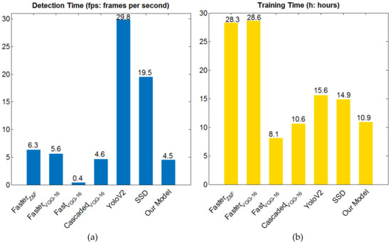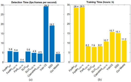 Detection time and training time on the VEDAI 512 set (a) detection time (b) training time.