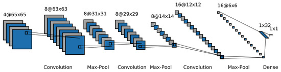 Figure 11 illustrates the architecture, starting at the left with inputs of 4-band NAIP patches. The first and the second convolutional layers consist of eight filters with a size of 3 × 3 and use zero padding to keep the spatial dimension of the resultant feature maps. The last convolutional layer consists of 16 filters.