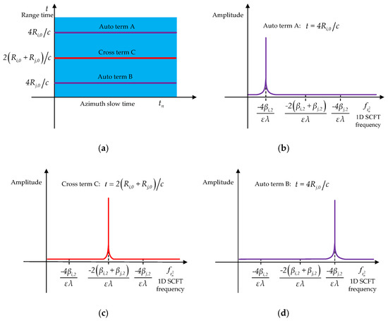 In accordance with Equation (28), the RCMs of auto and cross terms are all removed. The auto terms are focused at the positions of , and the cross terms are focused at the positions of . Then, the 1D SCFT is performed to the auto and cross terms. Accordingly, we have