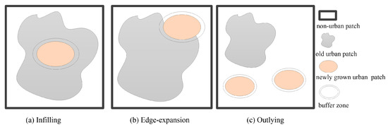 The three urban growth types (infilling, outlying, and edge-expansion).