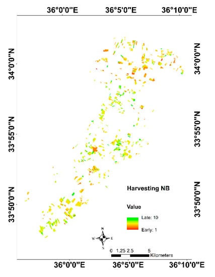 Eventually, to prove the robustness of the approach, since wheat is harvested earlier in the northern part of the plain than its western part, because of weather conditions and the wheat varieties, the same approach was performed on the northern part to estimate and map the harvesting time, as in West Bekaa.