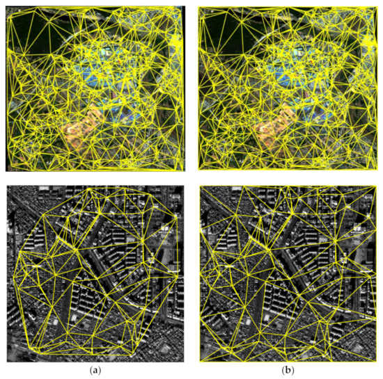 - Arévalo, V.; González, J. Improving piecewise linear registration of high-resolution satellite images through mesh optimization. IEEE Trans. Geosci. Remote Sens. 2008, 46, 3792–3803. [Google Scholar] [CrossRef]