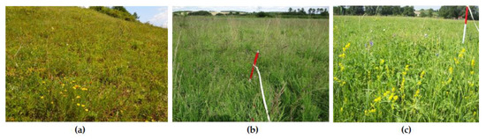 Selected Natura 2000 habitats in Ostoja Nidziańska area: (a) 6210; (b) 6410; (c) 6510 (photos by: B. Tokarska-Guzik, B. Babczyńska-Sendek and T. Nowak, all taken in July).