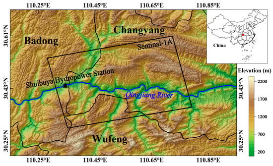 The research area is located in Hubei province, China and contains Changyang, Badong and Wufeng counties. The mainstream of Qingjiang river flows from west to east across the region. Shuibuya hydropower station is a key hydropower station located on the mainstream. The specific location of the study area is shown in Figure 4.