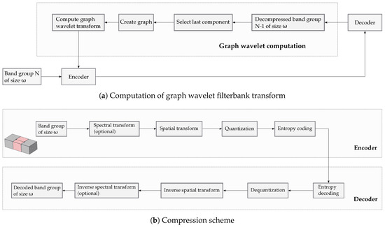 Using our proposed transforms mentioned above, we design a lossy-to-lossless extension to the scheme developed for the lossy compression of hyperspectral images through GraphBior in Reference [22]. The compression scheme published in Reference [22] tackles the issue of transmitting the graph structure to the decoder by assembling consecutive hyperspectral components into packets called band groups.