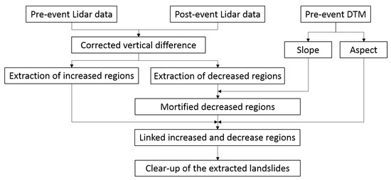Flowchart of the proposed method to detect landslides using pre- and post-event Lidar data.
