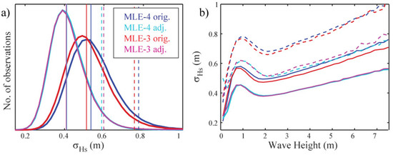 Figure 3c), with an increase at low sea states. The analysis of the output of the MLE-3 retracker yields a similar distribution for