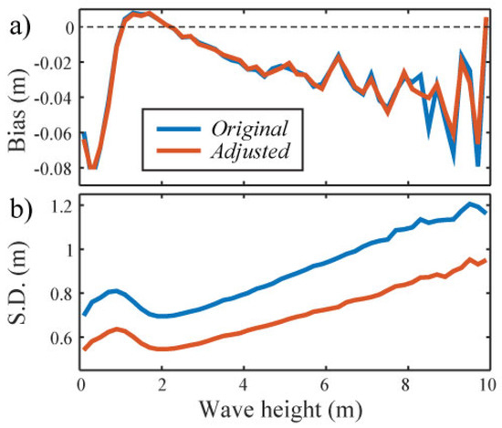 Figure 6b). Implementing the adjustment for both Jason-2 and Jason-3 has negligible impact on the mean offset between the two instruments, but reduces the S.D. of the differences by ∼22%.