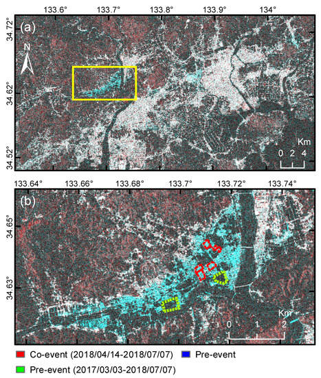 Moya, L.; Endo, Y.; Okada, G.; Koshimura, S.; Mas, E. Drawback in the Change Detection Approach: False Detection during the 2018 Western Japan Floods. Remote Sens. 2019, 11, 2320. https://doi.org/10.3390/rs11192320