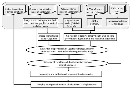 Li, G.; Xie, Z.; Jiang, X.; Lu, D.; Chen, E. Integration of ZiYuan-3 Multispectral and Stereo Data for Modeling Aboveground Biomass of Larch Plantations in North China. Remote Sens. 2019, 11, 2328. https://doi.org/10.3390/rs11192328