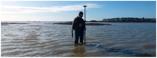 A GPS acquisition campaign was carried out at low tide in the western part of the bay in order to obtain the foreshore topography (Figure 6). More than 90 control points were levelled between the 0 Chart Datum closely corresponding to the lowest astronomical tide (see Table 1) to the top of the dry beach, passing over foreshore forms such as sand banks.