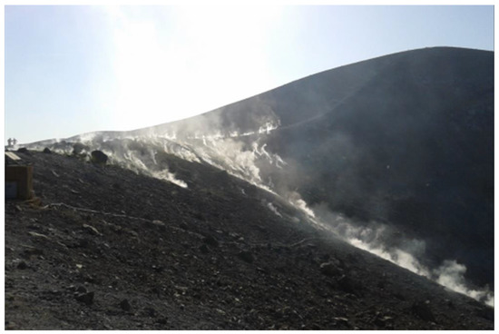 Our study focuses on the area of the mud pool of “Fangaia”, near Faraglione area, and La Fossa crater (Figure 1 and Figure 2), which were formed starting from the latest eruptive episode (<8 ka) [49].