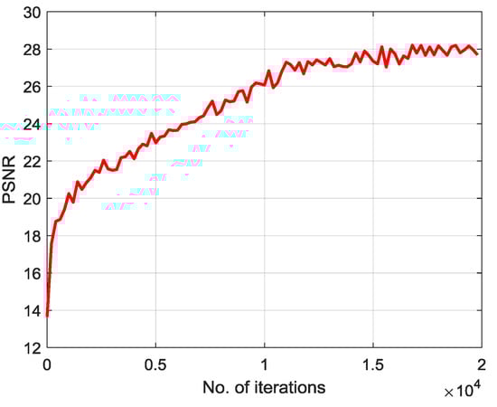 where is the number of convolutional layer, is the side length of the convolution kernel of the convolutional layer, and is the channel number of the output of the convolutional layer. The number of parameters of the neural network is mainly determined by the parameters of the convolutional layer. Each neuron in the BN layer contains two trainable parameters, and the number of bias parameters of each layer contained in the convolutional layer is relatively small, meaning both can be ignored here. After the calculation, the number of parameters in the SRGAN generator was about 1.22 M, the number of parameters of the discriminator was about 4.68 M, and the total number of parameters of SRGAN was about 5.90 M. While the number of parameters of VGGNet was about 37.69 M.