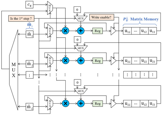 In the proposed system, each member of the same column in is processed and updated in parallel. As a result, it can be inferred that the instantiation of L-element multiply accumulates is necessary for Matrix Updater.