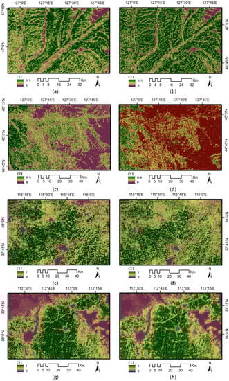 The second challenge is the problem of intra-class variations that are often ignored in large-scale cropping intensity mapping. Dominated by regional differentiation and crop phenology, the phenomena of SODS (same object with different spectrums) and DOSS (different objects with same spectrum) are very common in large-scale vegetation mapping []. Wardlow argued that vegetation index profiles were affected by regional variations in climate and management practices, which should be accounted for by setting-up individual profiles for each homogenous agro-region []. Gong proposed that improving mapping accuracy should focus on building more effective features, rather than optimizing the algorithm []. Chen believed that specialized knowledge derived from DEM, ecological zone, and other auxiliary data is an important way to overcome the difficulty of SODS and DOSS in remote sensing image classification []. However these within-class variations have seldom been fully addressed in the existing approaches []. Mapping cropping intensity over large areas is challenging, and the methods of cropping intensity mapping on a large-scale should be further strengthened.