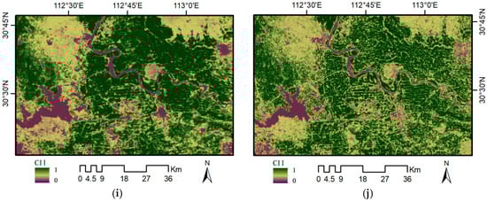 First, we compared the modeled CII with the sample CII through visual interpretation. Five patches from the sample areas were selected to draw these figures (Figure 7). We found that the CII samples were well consistent with the modeled result and showed the detailed cropping frequency information.