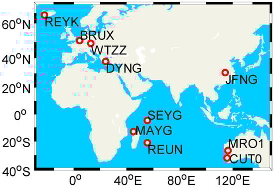 Geographical distribution of the selective MGEX stations.
