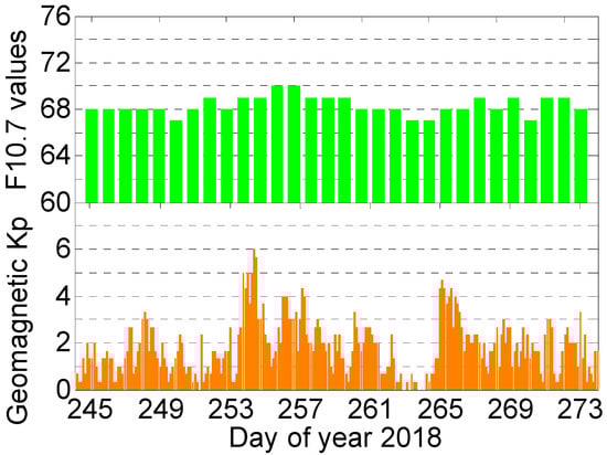 F10.7 values and geomagnetic Kp index on 1–30 September 2018.