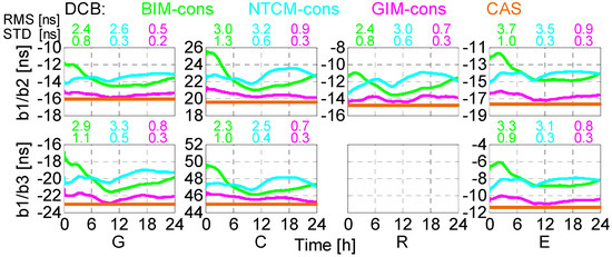 - Jin, S.G.; Jin, R.; Li, D. Assessment of BeiDou differential code bias variations from multi-GNSS network observations. Ann. Geophys. 2016, 34, 259–269. [Google Scholar] [CrossRef]