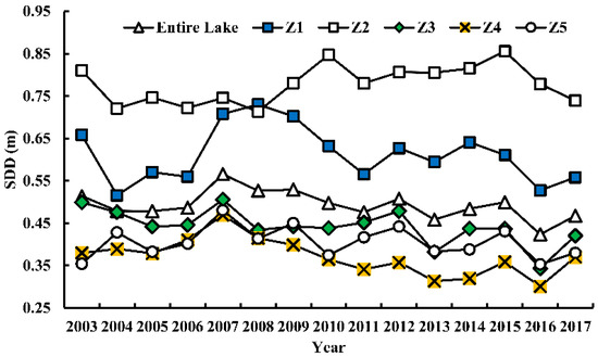 Seasonal results of SDD derived from MODIS-Aqua images for the entire lake during the period 2003–2017.