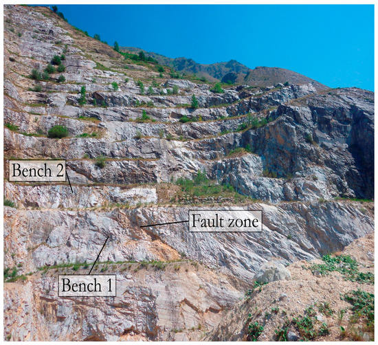 The quarry is at an elevation roughly between 900 and 1250 m. The front has an envelope slope of approximatively 53° and the dip direction is southeast (about 125°). It is structured in benches (10 m high, 2–2.5 m wide). The dip of the single terrace face is approximatively 62°–65° with local situations of greater acclivity. The front perpendicular to the cultivation has an envelope slope of approximatively 45° and is set on the schistosity planes. The dip direction of the front envelope is towards the South-West (about 200°). The dip of the single step elevation is that of the schistosity and is approximately equal to 50° but is locally higher.