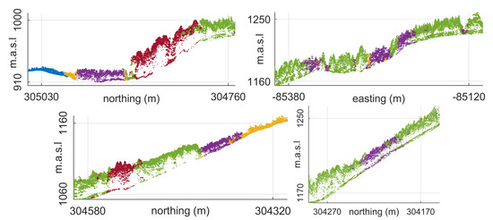 Defining a stopping criterion for segmentation is an important aspect for adequate forest patch delineation and relates to the detection of under- or oversegmentation. In the case of segmenting point clouds to objects, e.g., trees as in Amiri et al. [55], a model of the object under study can be introduced in order to determine the adequacy of the level of the segmentation.