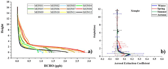 Monthly mean HCHO profile (a) and seasonal mean AEC (b) in Xianghe.