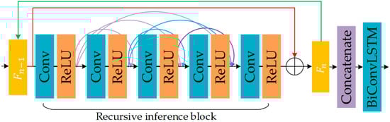 where denotes the operation of the n-fold recursive inference block and (n = 1,…N) denotes the output of - RIB. BiConvLSTM takes the concatenation of all results as an input according to the order of recursion.