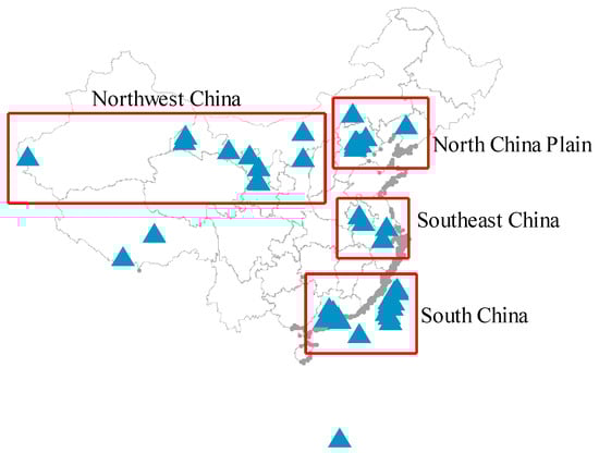 Location of the AERONET sites in China.