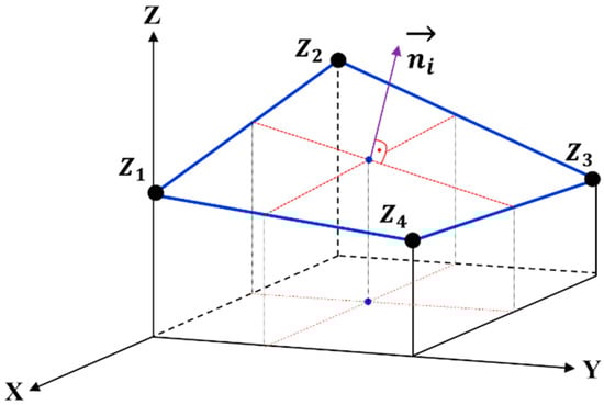 where indicates the i-th point, is a normal vector of length 1, is the location of the GCP, and is the location of the corresponding point on the surface. For non-planar surfaces patches like bilinear surfaces (Figure 2), the optimization can be solved iteratively with approximating tangential planes, for which the surface point that best matches can be found iteratively.