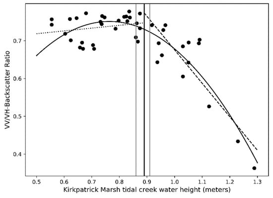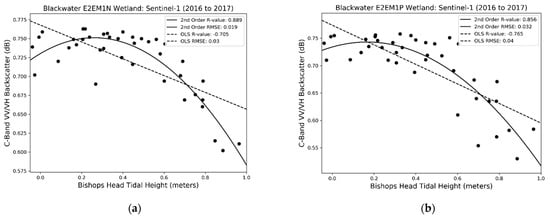 0VH ratio were both strong indicators of the tidal inundation extent given the moderate–high goodness of fit between the site-adjusted tidal stage and marsh integrated backscatter above the bankfull depth as defined in Nelson et al. [