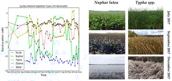Nuphar lutea decayed at the end of the growing season, which was effectively tracked with decreases in the C-band SAR backscatter (