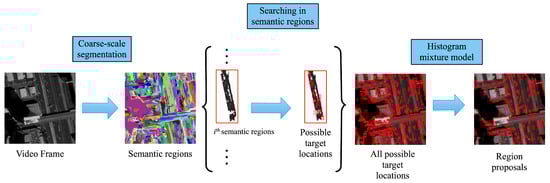 To address the degraded performance of current region proposal extraction methods for satellite videos, we proposed a novel region proposal approach (LRP), in which possible locations of targets are searched in semantic regions by coarse-scale segmentation and a Histogram Mixture Model (HistMM) is proposed to select region proposals with high likelihood from them.