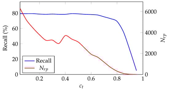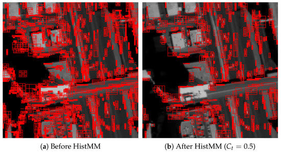 - HistMM Threshold is the Bayesian decision threshold in the HistMM for removing obvious false alarms as presented Section 2.3. The HistMM model with a smaller tends to keep more obvious false alarms, which leads to unnecessarily more region proposals decreases. On the other hand, increasing would filter out more obvious false alarms from the searched region proposals. As shown in Figure 6, when increases to 0.5, the number of region proposals () reduces significantly, while the recall scores holds nearly stable about 80%, which presents the most efficient case.