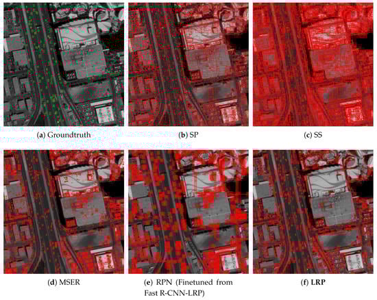 Qualitatively, the region proposals generated by our LRP are more concentrated on possible targets, while those saliancy object-based approaches, SS and SP, produce more evenly distributed region proposals, as shown in Figure 8. A similar phenomenon is observed on the results by RPN, as both RPN and our LRP remove those obvious false alarms from the background.