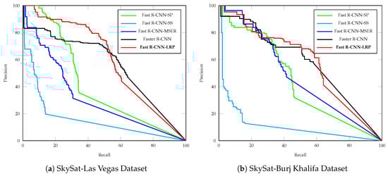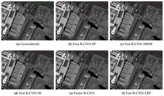 Compared with detection results by SP and SS approaches, our approach recalls most of the targets with the highest AP scores, as presented in Table 4 and Figure 10. Compared with the state-of-the-art Faster-RCNN model, the developed LRP with Fast-RCNN model achieves slightly improved detection performance. As illustrated in Figure 11, fewer false alarms with higher detection scores are produced by the Fast R-CNN model using the proposed LRP approach.