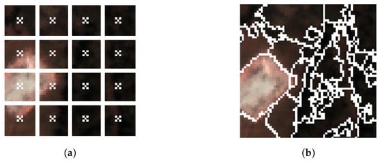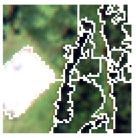 - Achanta, R.; Shaji, A.; Smith, K.; Lucchi, A.; Fua, P.; Süsstrunk, S. SLIC superpixels compared to state-of-the-art superpixel methods. IEEE Trans. Pattern Anal. Mach. Intell. 2012, 34, 2274–2282. [Google Scholar] [CrossRef]