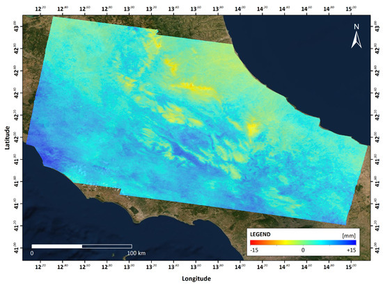 For the Silvi Marina case, also ZTD map retrieved from Sentinel-1 is available. In this work 49 Sentinel-1 images have been downloaded and processed by SqueeSAR [38]. Details of the images processed are reported in Table 2.
