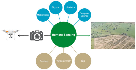 Figure 2 summarizes all the knowledge areas that students use together with RS in this subject. In the Bachelor of Agrifood Engineering and Rural Environment in ETSIAM, students have previously studied geodesy, photogrammetry, GIS, and RS. Specifically, the courses in photogrammetry and RS emphasize manned aerial and satellite platforms, respectively and therefore, students have previously studied the fundamentals of both geomatic disciplines. Through their academic training, students have additionally studied mathematics, physics, and statistics. Moreover, they have worked with R-commander developing scripts as a statistical tool. Due to this preparation, students are ready to work on the specific characteristics of the UAV-RS by using and applying the knowledge previously acquired in earlier courses.