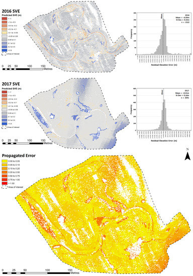 Whilst we can realistically aim to reconstruct systematic errors (or bias) within models, we will never be able to predict random errors (noise). For this reason, [1] argued that a deterministic model of elevation error can never be constructed unambiguously. As a result, they use a fuzzy inference system for error estimation based on membership of their GPS validation data to three functions: Slope, point density, and point quality. We suggest that a deterministic prediction of error is possible to an extent and, so long as we keep in mind the occurrence of random error in addition to the error we predict, that implementation of a model such as ours is appropriate. With the advent of artificial intelligence, we believe it is only a matter of time and effort, in collating sufficient and appropriate evidence, before machine/deep learning approaches are capable of predicting systematic errors within RPAS–SfM elevation datasets routinely.