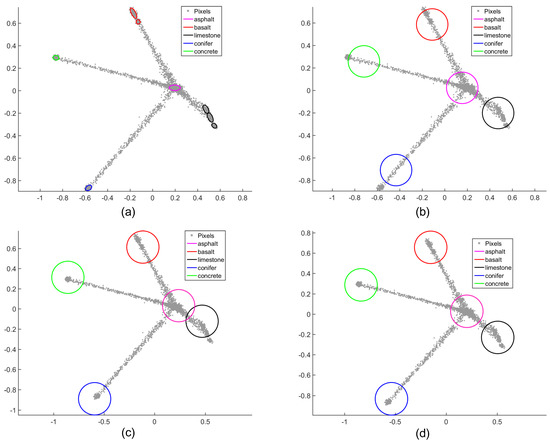 - Nascimento, J.M.; Dias, J.M. Vertex component analysis: A fast algorithm to unmix hyperspectral data. IEEE Trans. Geosci. Remote Sens. 2005, 43, 898–910. [Google Scholar] [CrossRef]