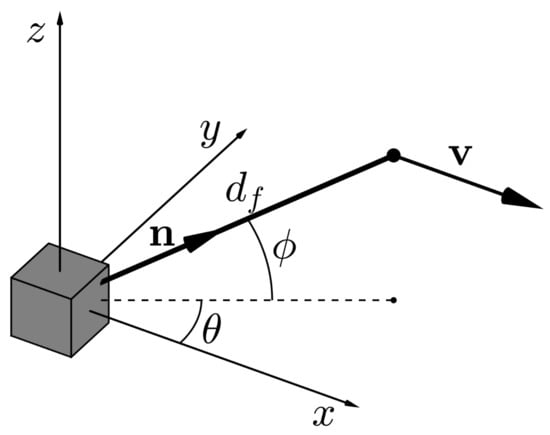In order to understand the origin of these biases and filtering effects, we can start by assuming that the measurements are performed with a single scanning lidar (see Figure 1), which is measuring the wind , where u, v, and w are the velocity components along the horizontal axes x- and y-, and the vertical axis z, respectively, at a distance with a beam in the direction of the unit vector ,