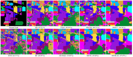 Classification maps of the Indian Pine dataset obtained by different methods (AA).