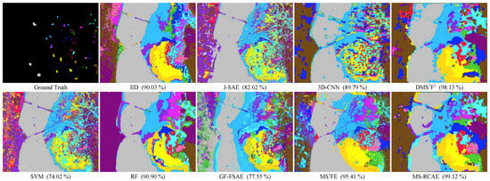 Classification maps of the KSC dataset obtained by different methods (AA).