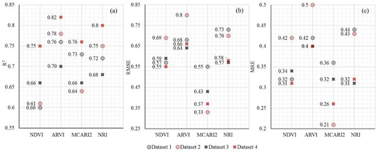 | n = 107 | R,NIR,B | 0.42 | 0.94 | 0.70 | ARVI | 0.74 | 0.51 | 0.30 | |