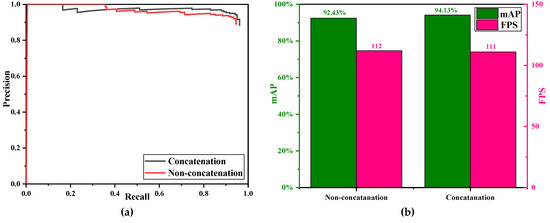 In addition, considering that our method has faster detection speed, but may reduce accuracy. Therefore, to improve the detection accuracy, we also adopted concatenation mechanism (two blue arrows in Figure 4), inspired from the experience of DenseNet [47].