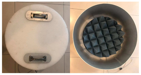 The calibration equations (horizontal and vertical channels) are determined from two points: a hot and a cold targets. In this study, the sky was used as “cold target”, and an ambient temperature blackbody target as the “hot target”. The “hot target” consists of pyramidal open-cell blackbody foam in which two precision temperature sensors are embedded (Figure 3). Since the “hot target” is seen as a near-blackbody target, the value of the emitted brightness temperature is equal to its physical temperature. The brightness temperature for “cold target” is nominally 3.5 K, provided that the field of view of the radiometer is away from the galactic center and the sky is clear. To accomplish this, according to the galactic noise map [34,35], the antenna was pointed to the north, and at an elevation angle approximately 65° above the horizon.