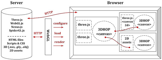 - Potenziani, M.; Callieri, M.; Scopigno, R. Developing and Maintaining a Web 3D Viewer for the CH Community: An Evaluation of the 3DHOP Framework. In Proceedings of the Eurographics Workshop on Graphics and Cultural Heritage, Vienna, Austria, 12–15 November 2018; pp. 169–178. [Google Scholar] [CrossRef]